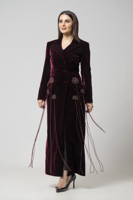 بدله انيقه ومميزه شتويه الخامه مخمل من قطعتين جاكيت مشغول ومزين كامل بالخرز وبنطلون مخمل