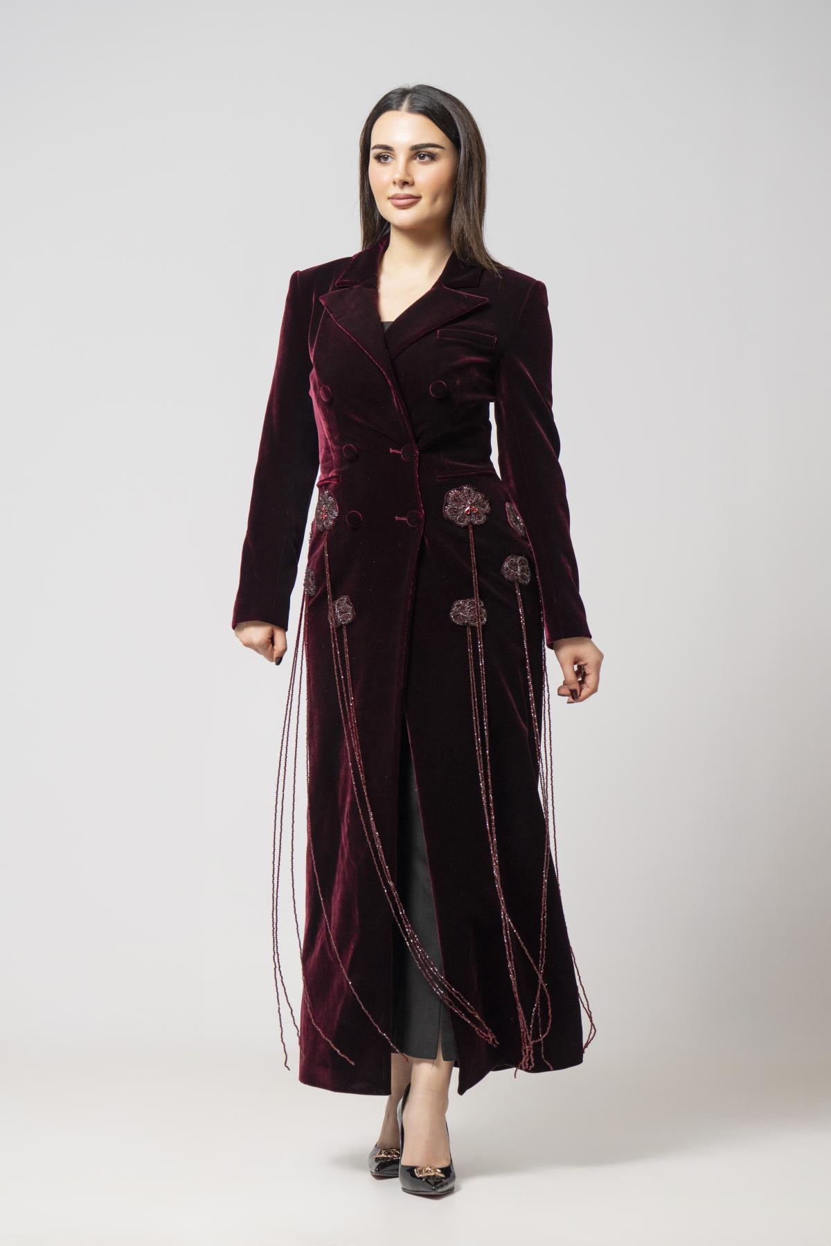 بليزر مخمل عنابي بتصميم راقي